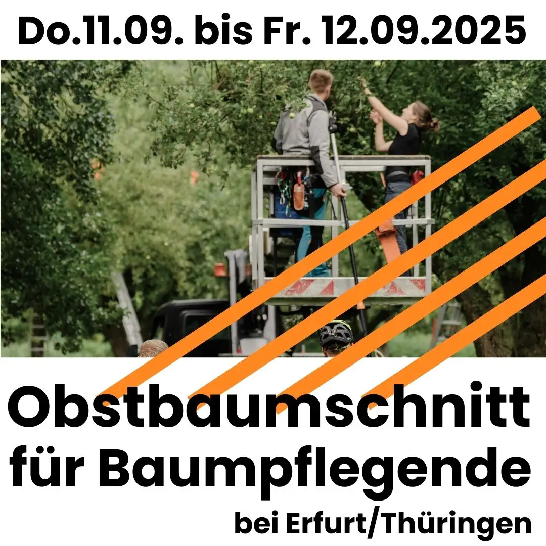 Sep. 11 Do. 11. September um 9:00 - Fr. 12. September um 17:00 Intensivkurs Sommerschnitt von Obstbäumen für Baumpflegende bei Erfurt/Thüringen Intensivkurs Obstbaumpflege für Baumpflegende Ellichleben bei Erfurt An d. Kirche 46, Witzleben / Ellichleben Veranstaltung Details Get Directions